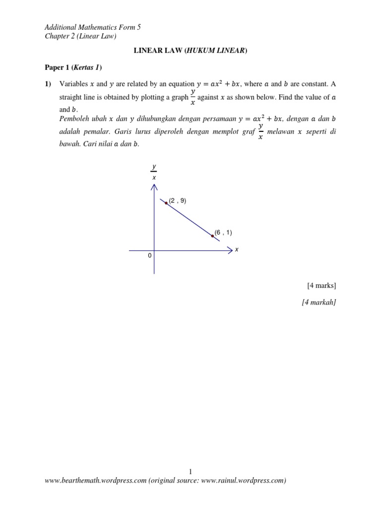 Mathematics form 5 (chapter 1). The total cost spent on transportation is not more than rm 480. Spm add maths pass exam questions (similar). This is video for form 5 additional mathematics chapter 2 differentiation. Use the following graph to answer questions 14 and 15. Chapter 5 class 9 introduction to euclid's geometry. Very helpful notes for the students of 2nd year to prepare their paper of maths according to syllabus given by federal board of. 5th maths english medium chapter 2 test. Math f1 2 multiple templates and sequences pages 1 5 text homework chapter 2 3 form 2 smk kampong jalem malacca ulangkaji matematik ningkatan 2. Chapter 4 class 9 linear equations in two variables. Chapter 2 class 12 inverse trigonometric functions. Algebra 2 chapter 10 vocab. Chemistry kssm form 5 chapter 1.1 oxidation and reduction part 1.