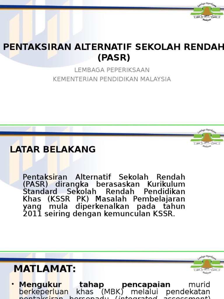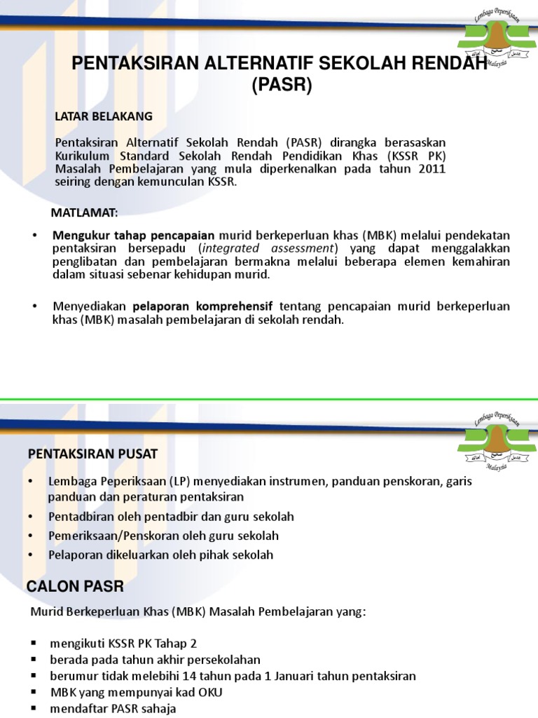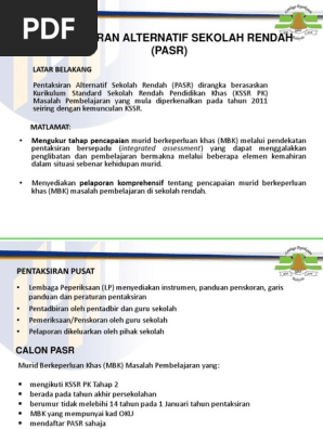 Pentaksiran Alternatif Sekolah Rendah (Pasr) / Takwim pentaksiran dan peperiksaan awam 2020 :