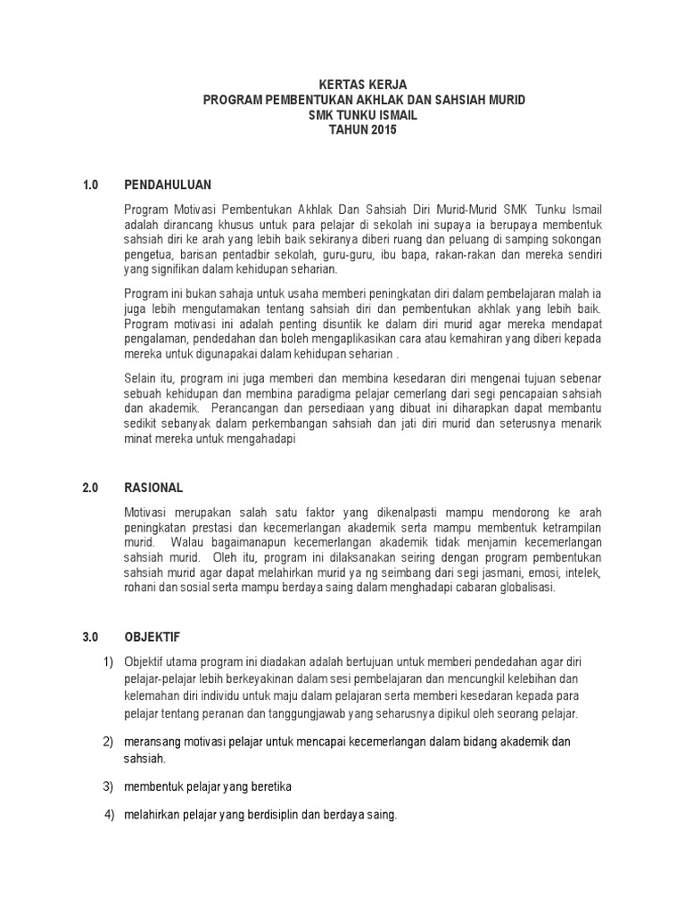 Kertas kerja kem jati diri (pelajar berisiko). We are a sharing community. Contoh kertas kerja berkenaan dengan program sahsiah diri murid yang boleh dilaksanakan di peringkat sekolah di bawah unit hem. Download kertas kerja pembangunan sahsiah diri dan disiplin murid 2018.docx. Kertas kerja proyek perubahan instansional. Judges are required to undertake a. Kertas kerja program peningkatan akademik. Kertas kerja program sahsiah diri mp3 & mp4. Kertas kertas kerja program pemantapan pemantapan s sahsiah ahsiah sekolah kebangsaan seri tasek 14120 simpang ampat seberang perai. Kertas kerja program pemantapan disiplin. Secara garis besar dikelompokan dalam. Oleh karena itu harus berisikan informasi yang lengkap, dan tidak berisikan. So please help us by uploading 1 new.