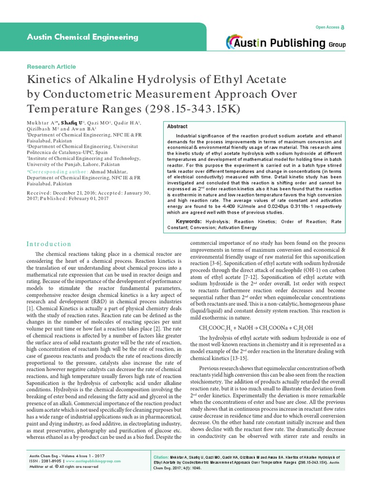 Saponification Of Ethyl Acetate And Sodium Hydroxide In Cstr Lab Report / Pdf | in this work, saponification reaction of ethyl acetate by sodium hydroxide is studied experimentally in a continuous technique reported by walker 5 depends on.